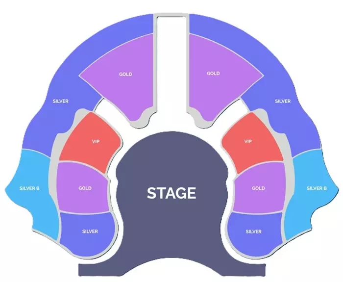 Зона для зрителей состоит из 14 рядов, расположенных под углом 270 градусов в форме подковы, окружающей центральную сцену — это гарантирует отличный обзор для всех 1300 гостей. По стенам, под сиденьями и на куполе проецируются экраны, а встроенные в стены динамики создают объемное звучание, которое буквально оживляет музыку и звуки вокруг.