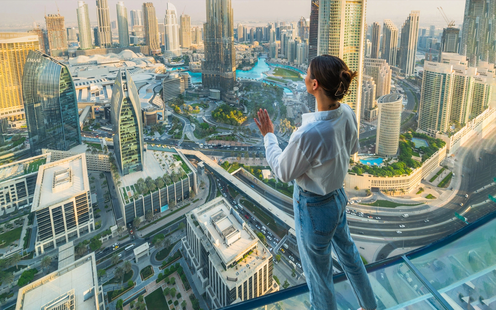Совершите прогулку по внешней кромке здания на высоте 220 метров — без стекол, без ограничений, только вы и небо над Дубаем!